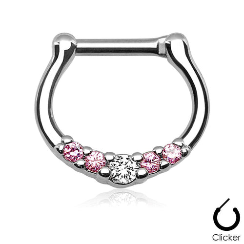 16ga Small White and Pink 5 Prong Set CZ Septum Ring 316L Surgical Steel Bar Clicker