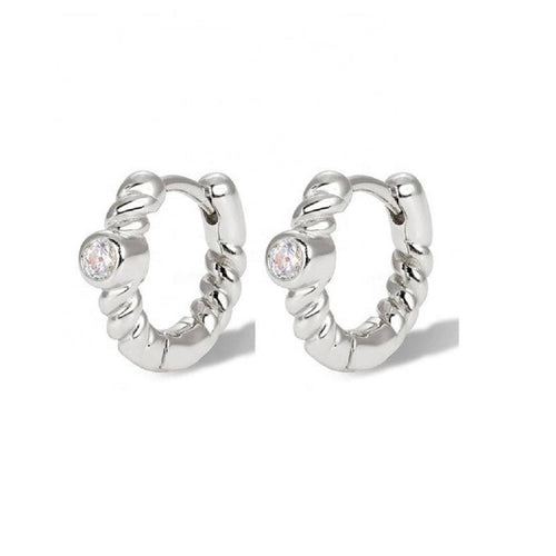 Pair of 925 Sterling Silver Braided Diamond CZ Gem Minimal Hoop Earrings
