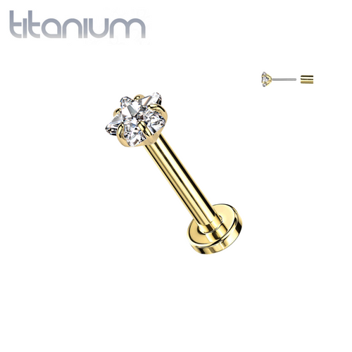 Implant Grade Titanium Gold PVD Internally Threaded White CZ Dangle Flat Back Labret