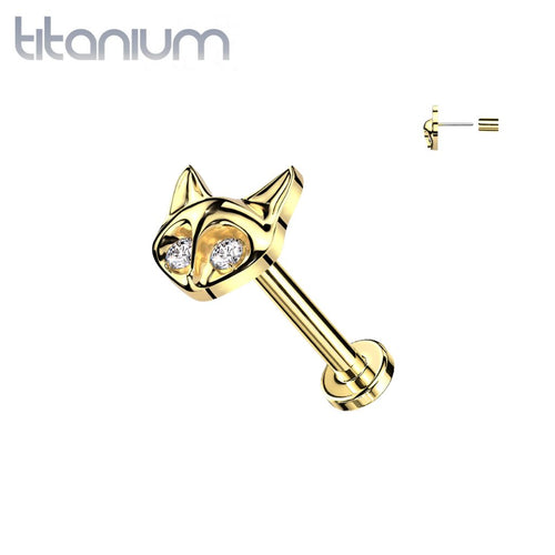 Implant Grade Titanium Gold PVD Cat White CZ Bezel Gem Threadless Push In Labret