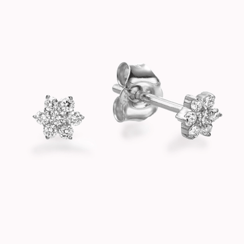 Pair of 925 Sterling Silver Small White CZ Gem Flower Minimal Earrings