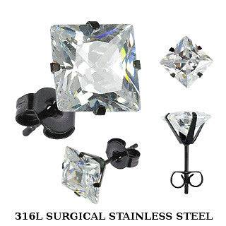Pair of Black PVD Surgical Steel Square Prong Set Earring Studs