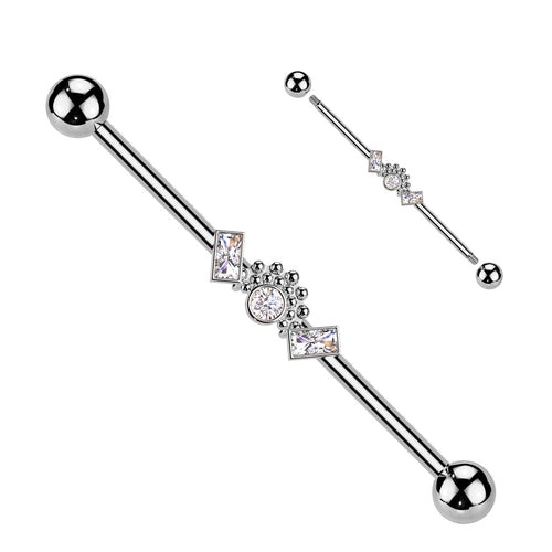 316L Surgical Steel White CZ Baguette Beaded Industrial Barbell
