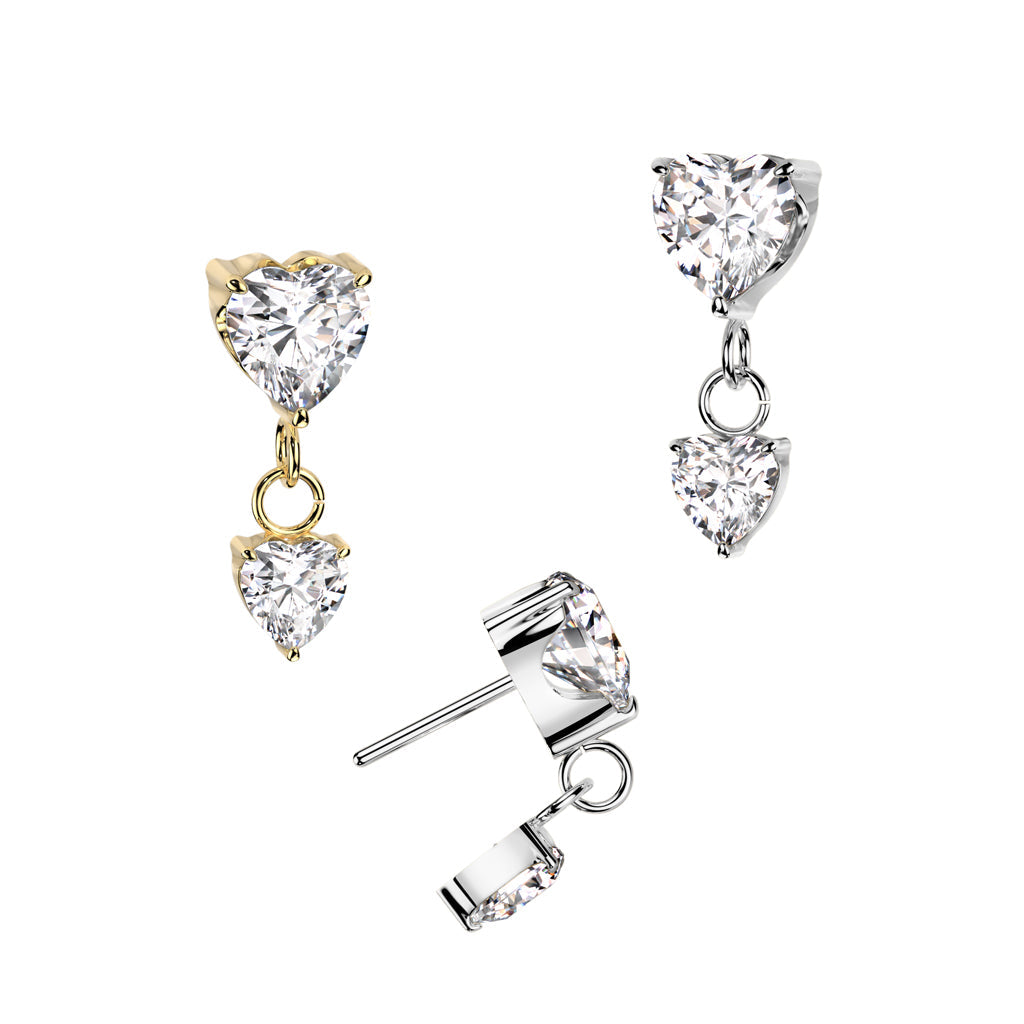 Implant Grade Titanium Gold PVD White CZ Heart Shaped Gem Dangly Threadless Push In Labret - Pierced Universe