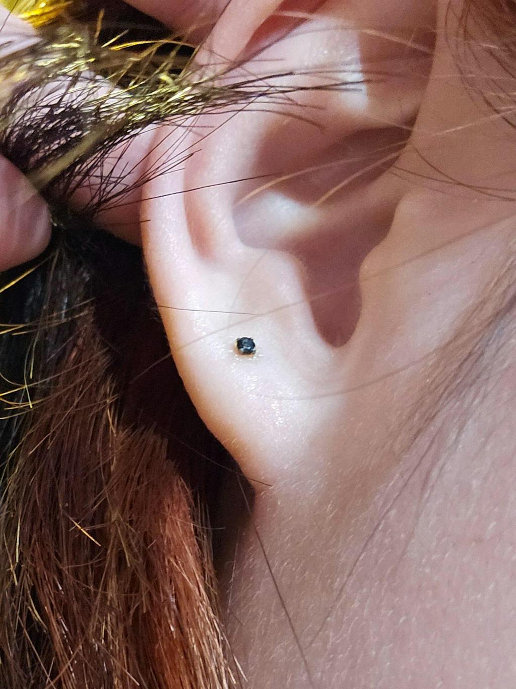 16ga(1.2mm) (common size for cartilage/tragus piercings used in tattoo/piercing shops}