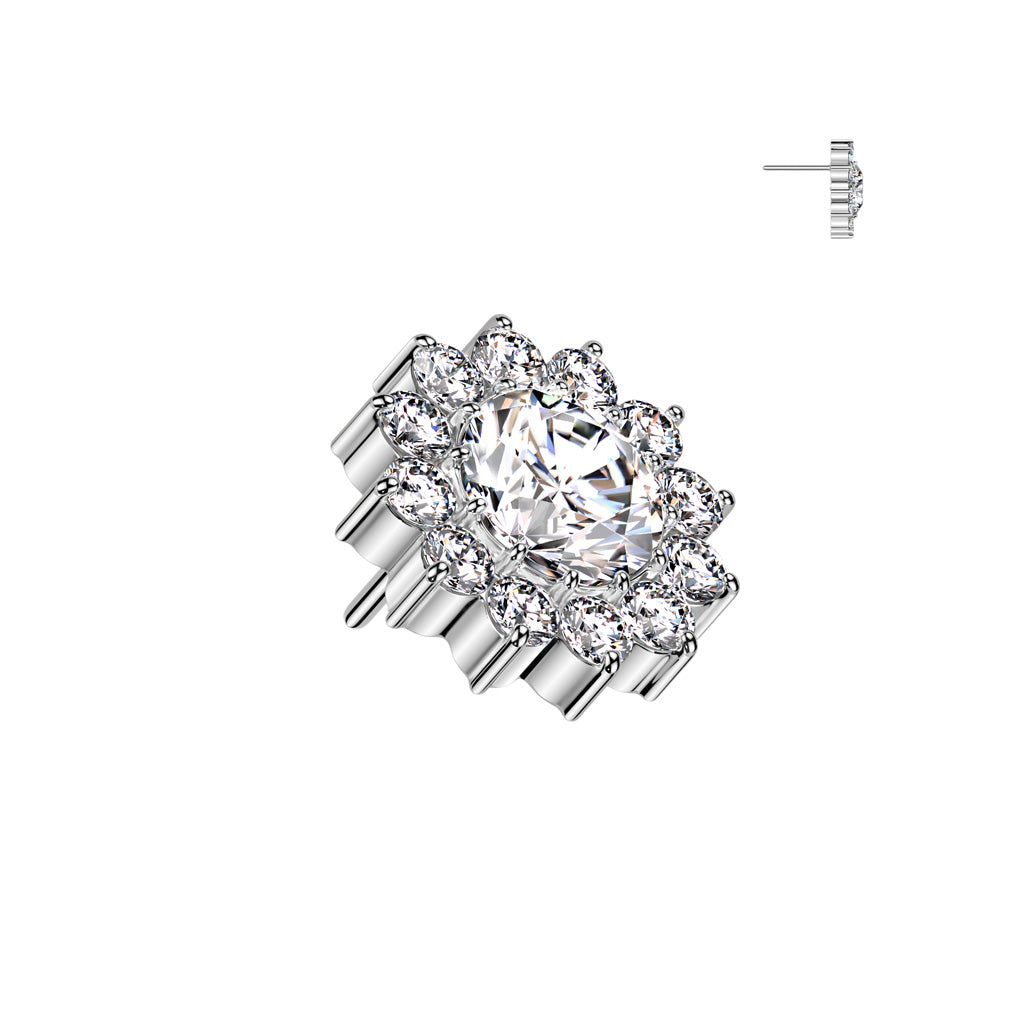 This Threadless Implant Grade Titanium Labret is perfect for any piercing. It has a Threadless CZ Sunflower top. It also comes in a variety of bar lengths. These are easy to put in and secure so it doesn't fall out.