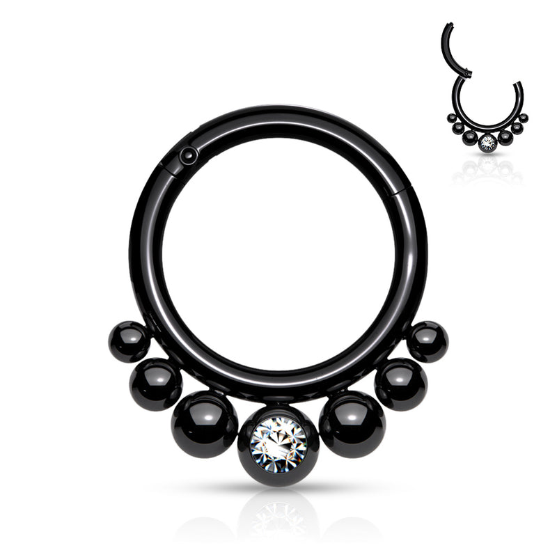 316L Surgical Steel Black PVD 7 Bead White CZ Hinged Clicker Hoop - Pierced Universe