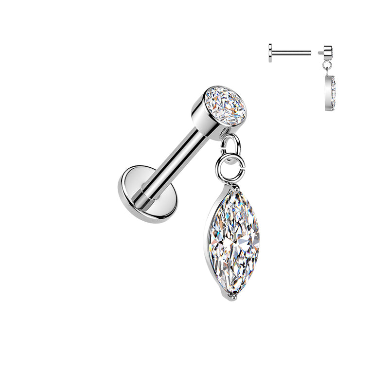 316L Surgical Steel White CZ Marquise Dangle Internally Threaded Flat Back Labret