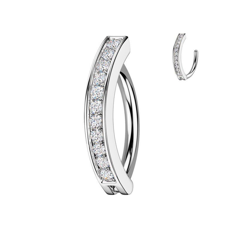 316L Surgical Steel White CZ Single Line Pave Hinged Clicker Belly Ring