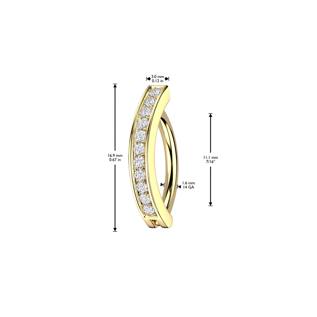 316L Surgical Steel Gold PVD White CZ Single Line Pave Hinged Clicker Belly Ring - Pierced Universe