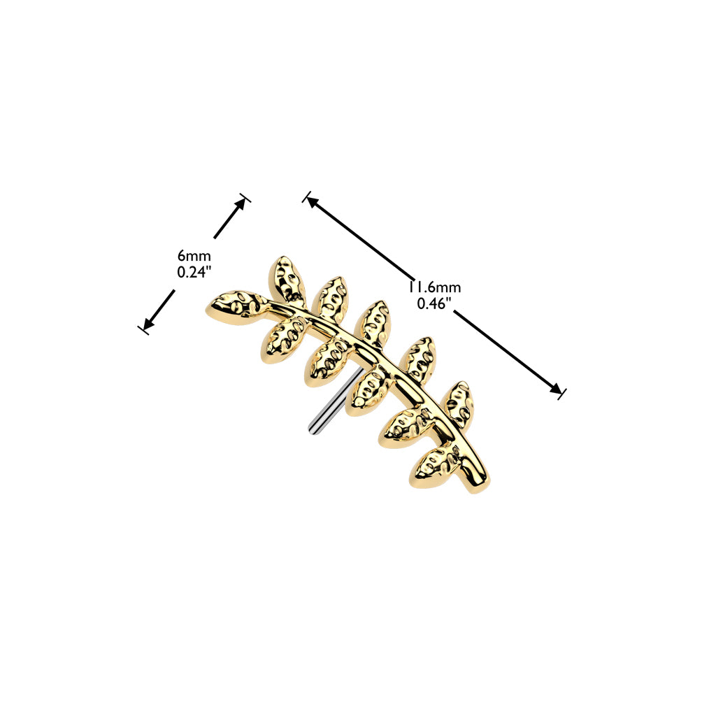 Implant Grade Titanium Gold PVD Curved Textured Leaf Push In Threadless Labret With Flat Back - Pierced Universe