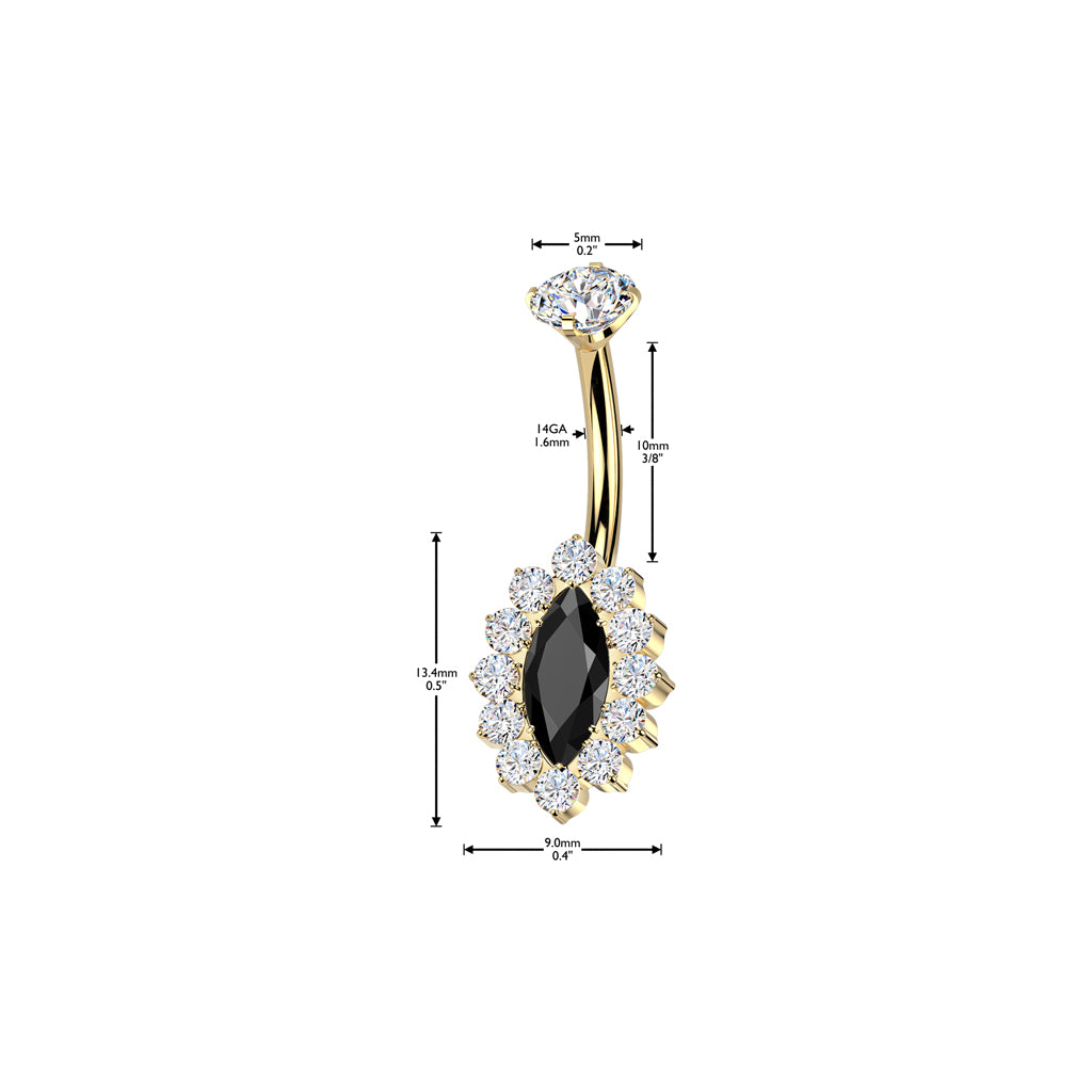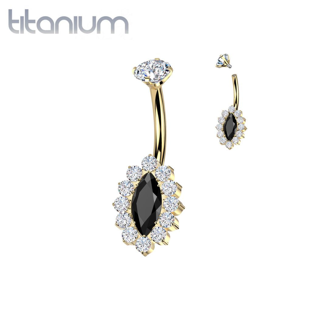 Implant Grade Titanium Gold PVD White & Black CZ Internally Threaded Marquise Non Dangle Belly Ring