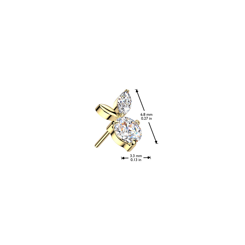 Implant Grade Titanium Gold PVD White CZ Apple Threadless Labret With Flat Back - Pierced Universe