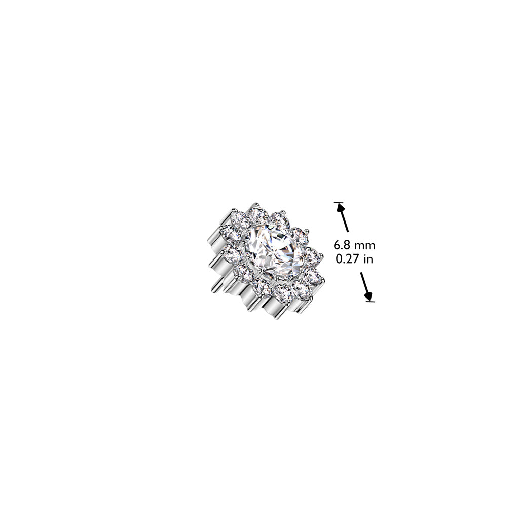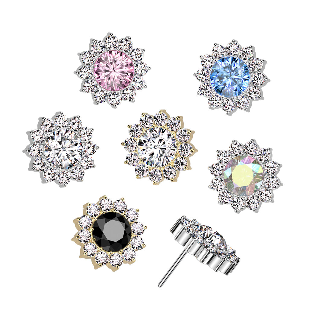 This Threadless Implant Grade Titanium Labret is perfect for any piercing. It has a Threadless CZ Sunflower top. It also comes in a variety of bar lengths. These are easy to put in and secure so it doesn't fall out.