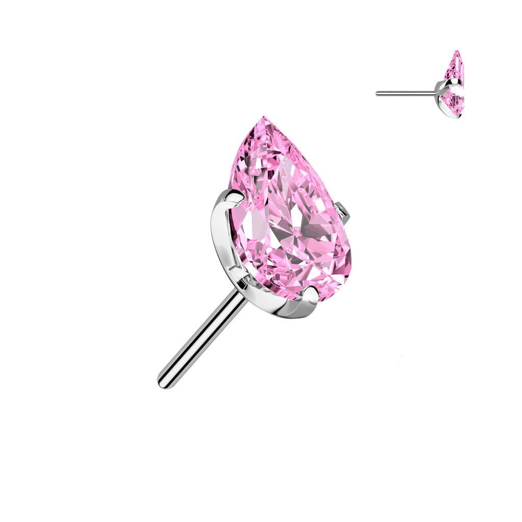 Implant Grade Titanium Pink CZ Teardrop Gem Threadless Labret With Flat Back - Pierced Universe