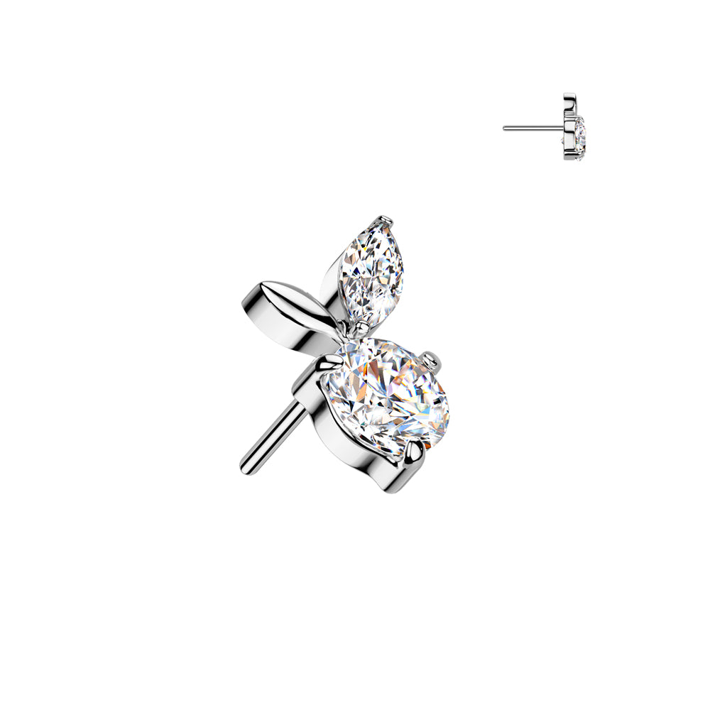 Implant Grade Titanium White CZ Apple Threadless Labret With Flat Back
