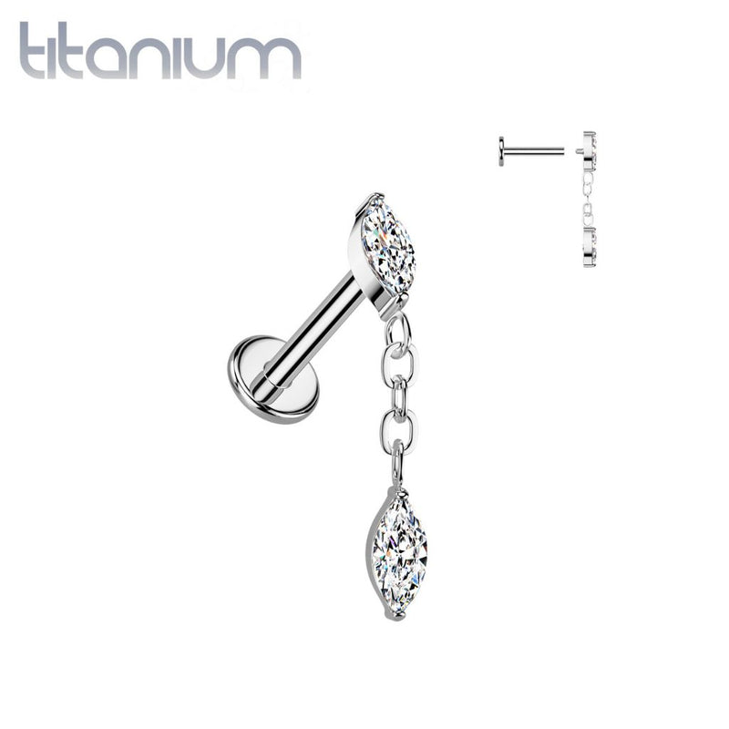Implant Grade Titanium White CZ Marquise Gem Dangle Internally Threaded Labret