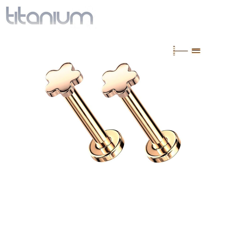 Pair of Implant Grade Titanium Rose Gold PVD Threadless Flower Push In Earrings With Flat Back